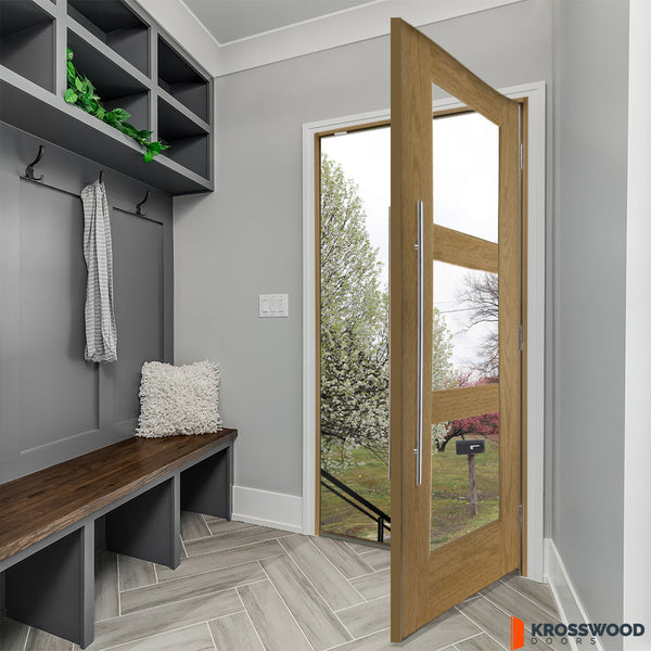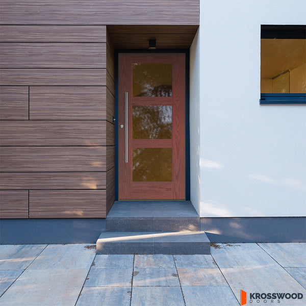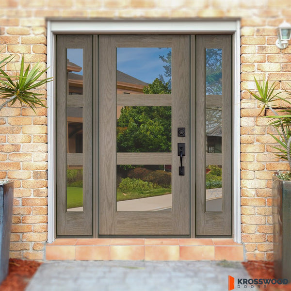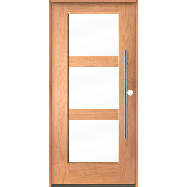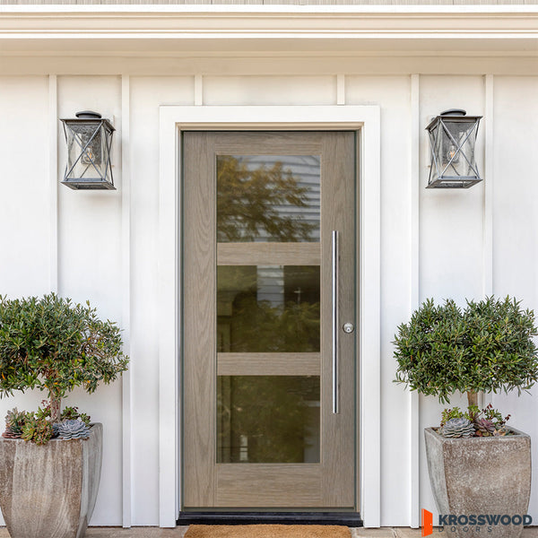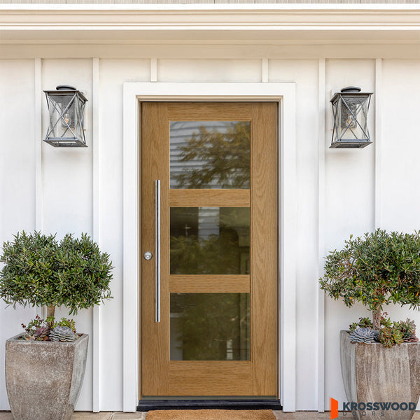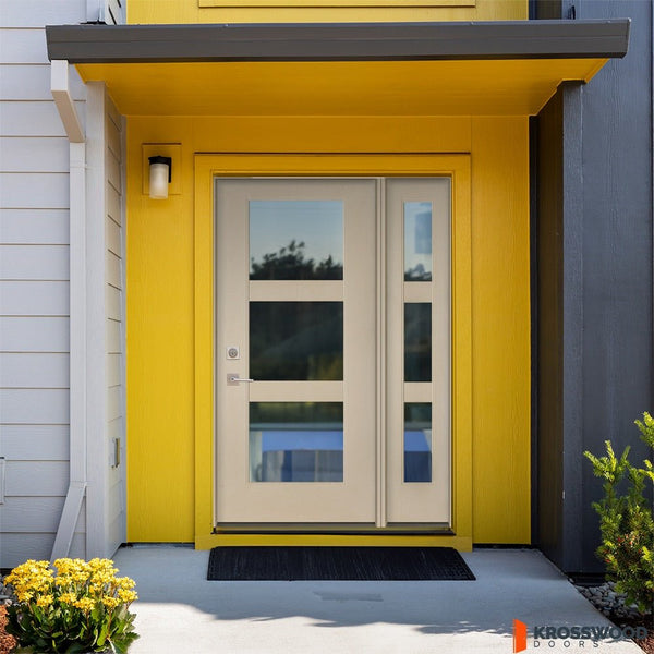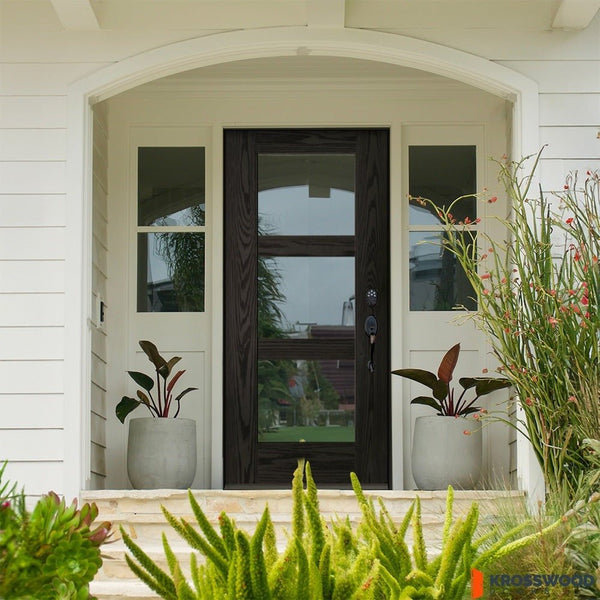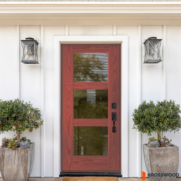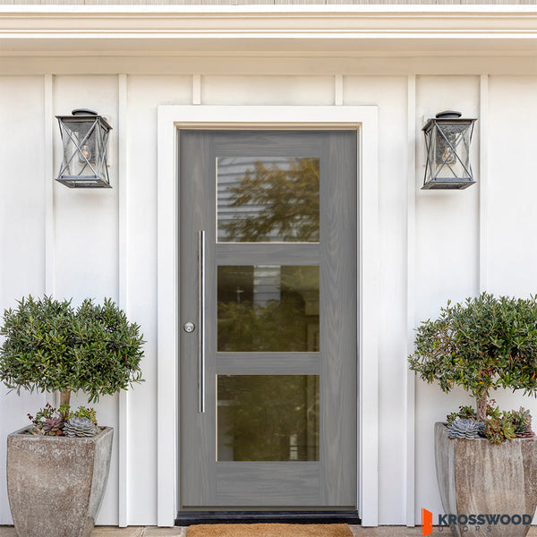 BRIGHTON Modern 3 Lite Clear Glass Wood-Texture Fiberglass Front Door