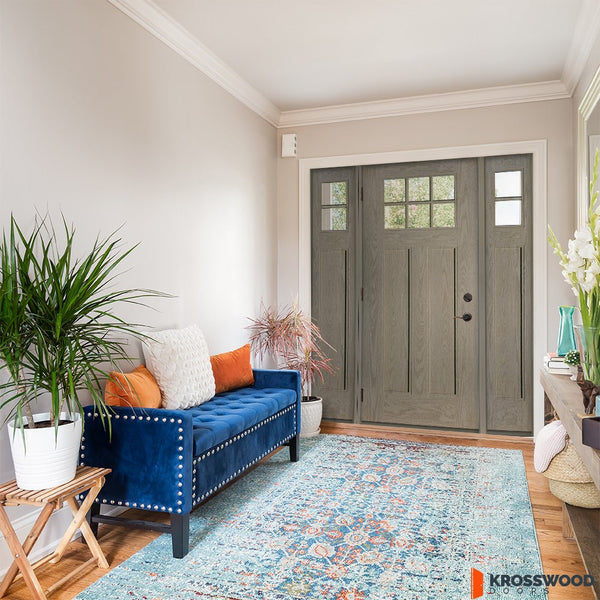PINNACLE Craftsman 6 Lite Glass Wood-Like Fiberglass Front Door