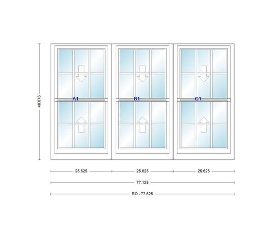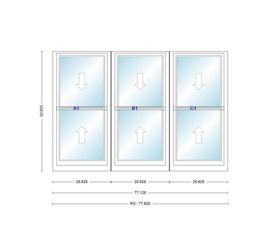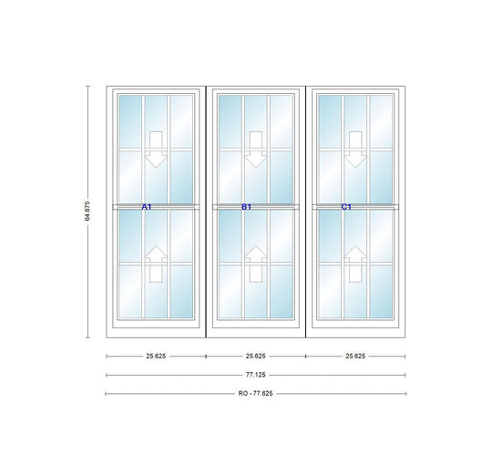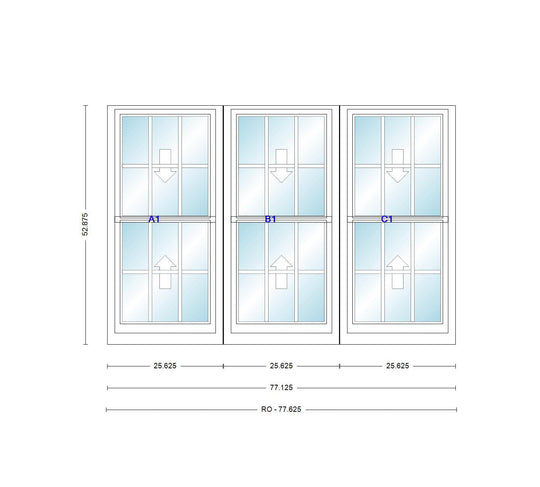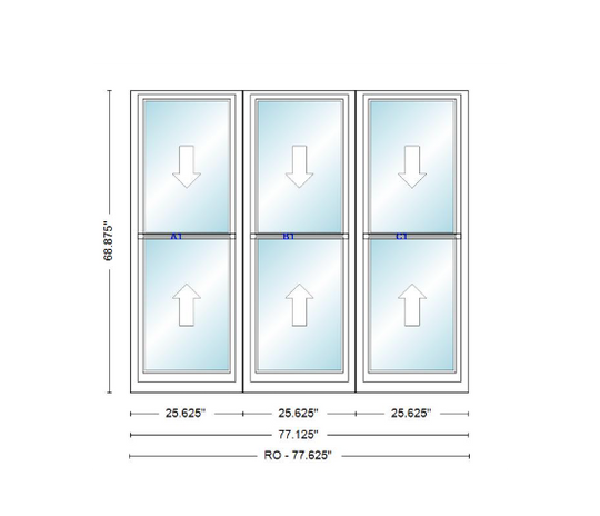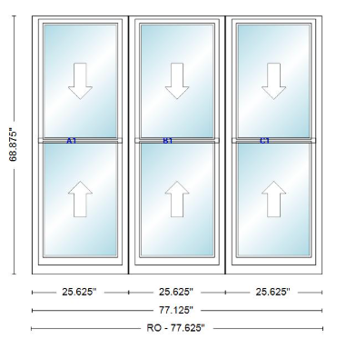 ANDERSEN Windows 400 Series Triple Double Hung Venting Window 77-1/8" Equal Sash Vinyl Exterior Wood Interior Low-E4 Dual Pane Glass Full Screen/Grilles/Tempered Optional TW20310-3, TW2042-3, TW2046-3, TW20410-3, Or TW2052-3
