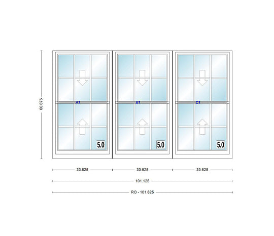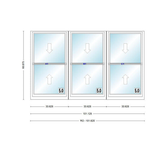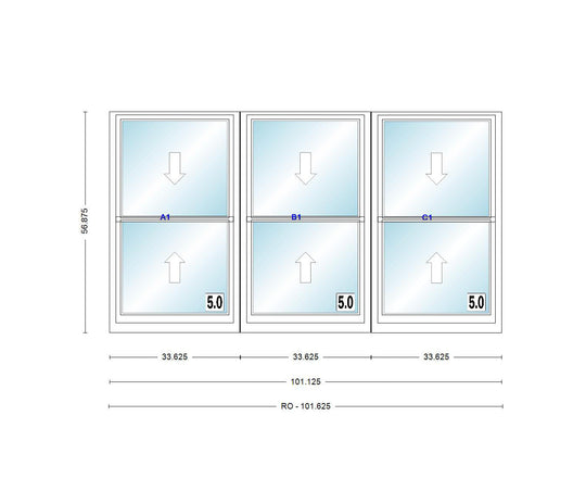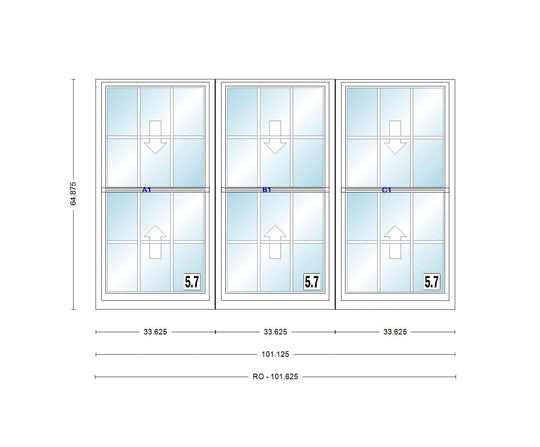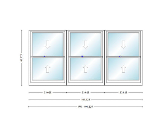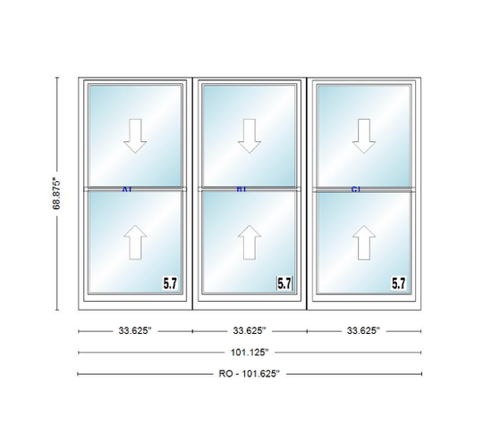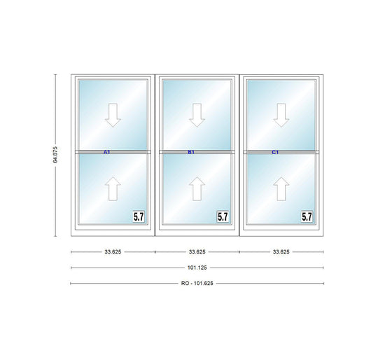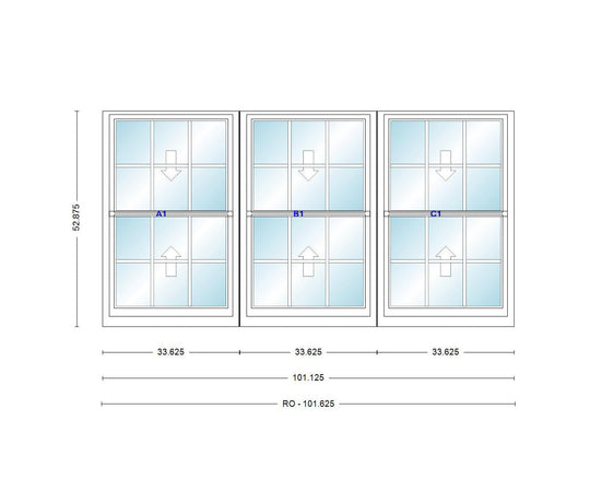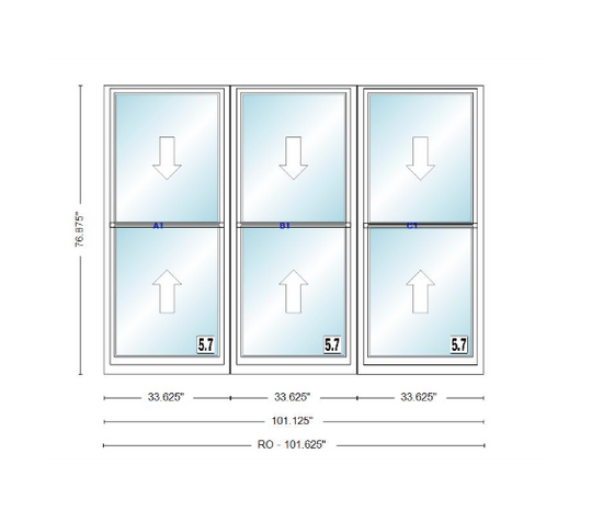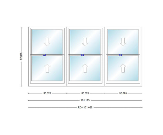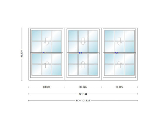 ANDERSEN Windows 400 Series Triple Double Hung Venting Window 101-1/8" Equal Sash Vinyl Exterior Wood Interior Low-E4 Dual Pane Glass Full Screen/Grilles/Tempered Optional TW28310-3, TW2842-3, TW2846-3, TW28410-3, Or TW2852-3