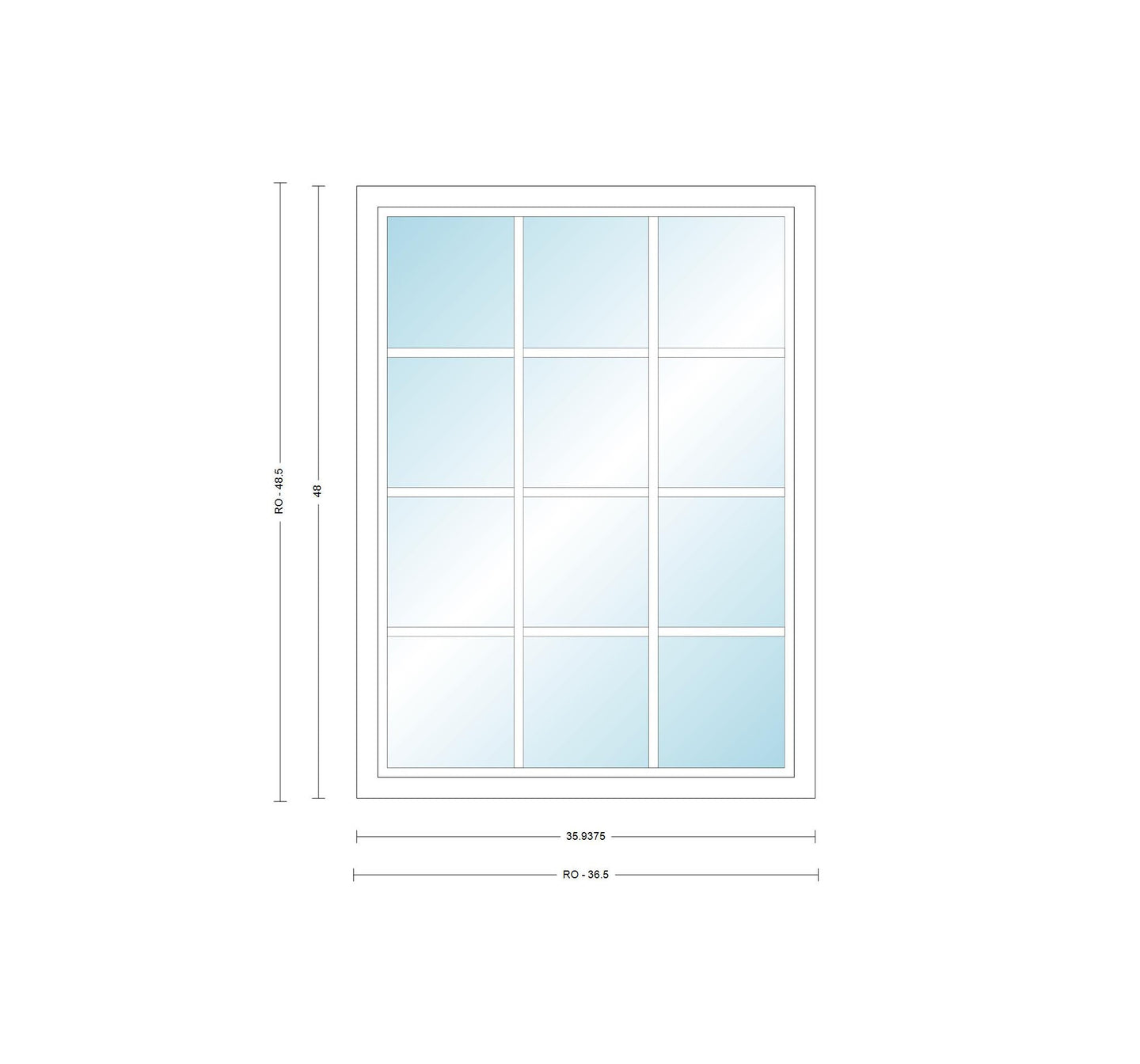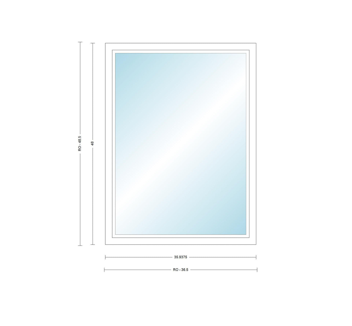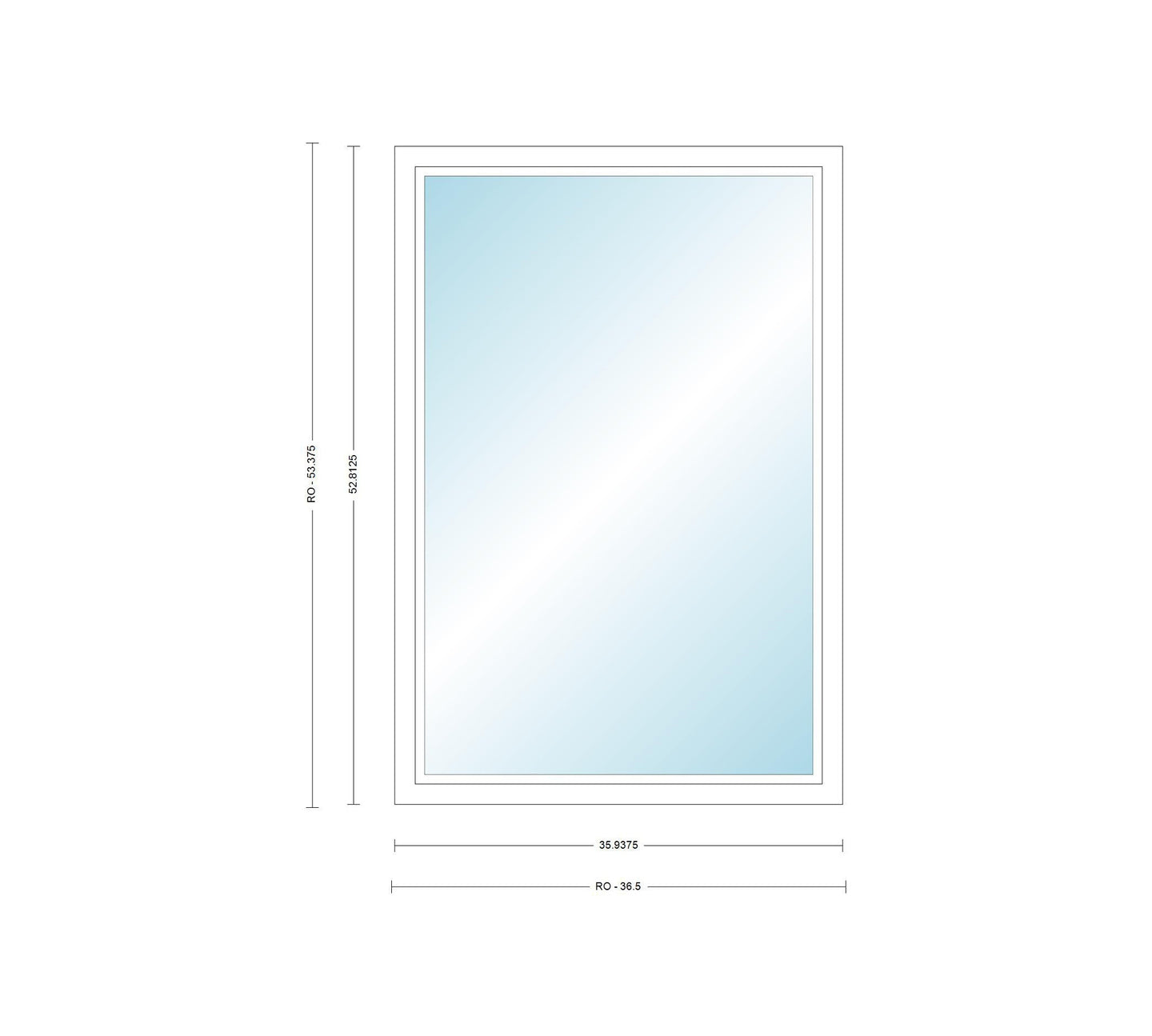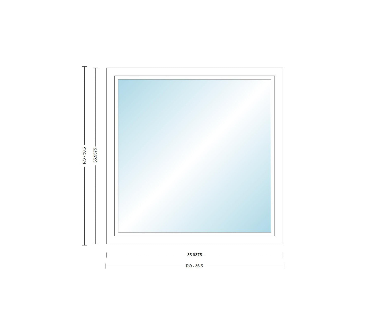 For the rough opening size add half an inch to the width and height.